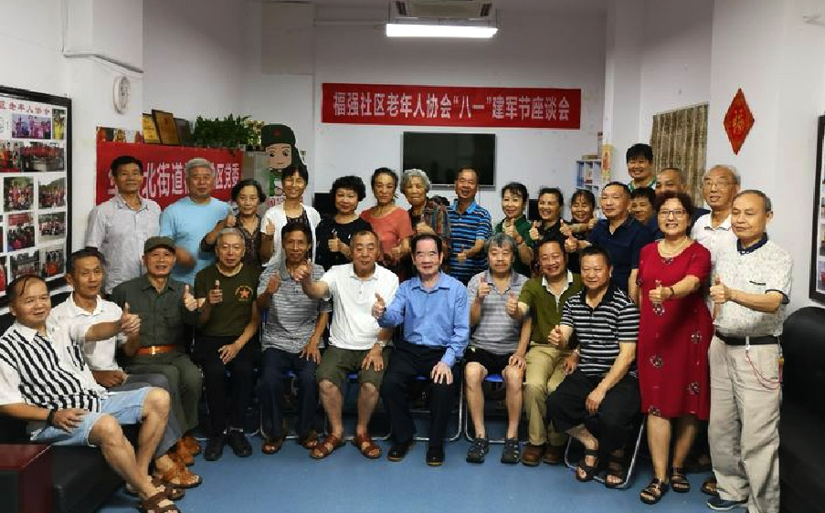 8月1日上午,福强社区老年人协会在《星光之家》召开了“八一”建军节座谈会。参加座谈会的有华强北街道老年协会会长丁添发,社区退伍老兵代表14人(其中越战老兵4人),以及社区老年朋友共38人,共同庆祝中国人民解放军建军92周年。
