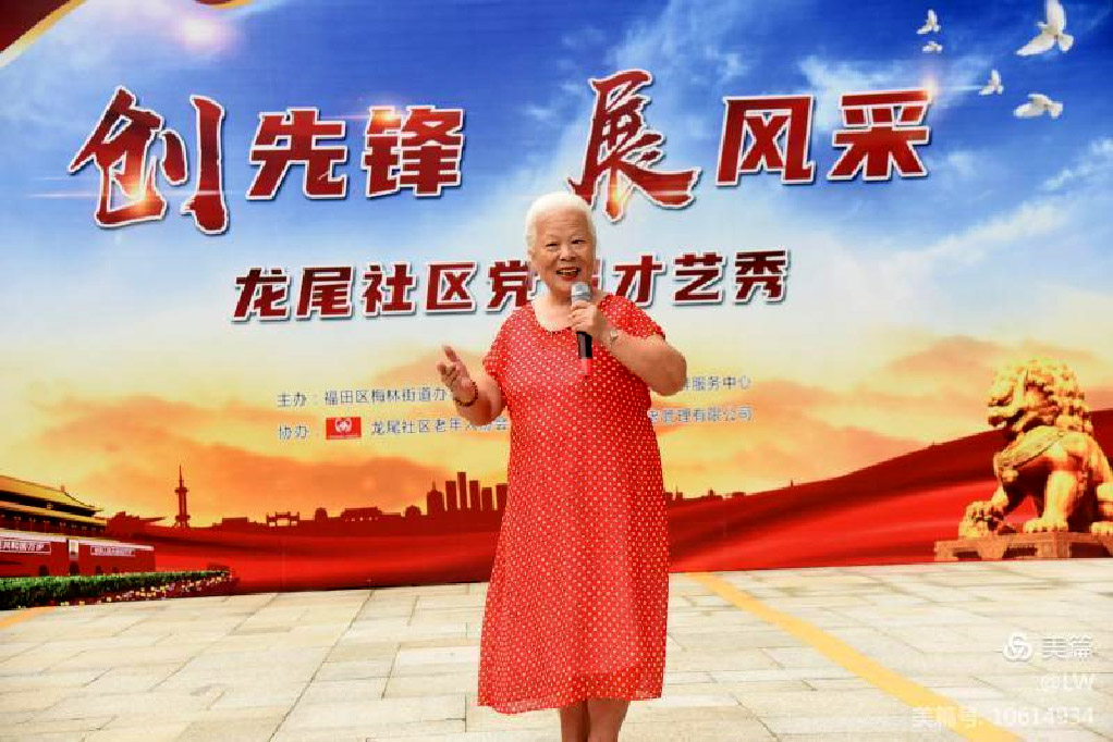 值此中国共产党成立九十九周年,为继承和发扬党的优良传统,弘扬正气,为丰富社区党员的文化生活,促进党员之间的感情交流,9月25日下午,由梅林街道办事处、龙尾社区党委、龙尾社区党群服务中心主办的“创先峰•展风采”龙尾社区党员才艺秀在松鹤颐养中心门前广场隆重举行。社区党员和居民现场演出民族舞、腰鼓、太极剑、朗诵、京剧、合唱等11个节目。
