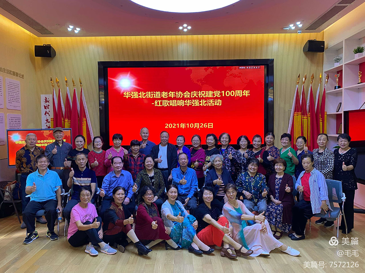 华强北街道老年协会庆祝建党100周年——红歌唱响华强北活动,在《没有共产党就没有新中国》的大合唱声中展开。