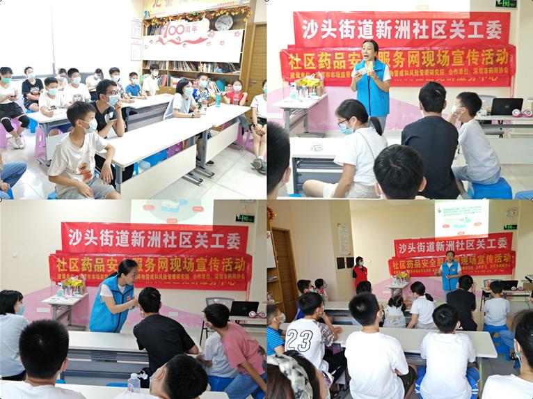 落实深圳“社区药品安全服务网建设工程”,强化辖区居民药品安全意识。7月14日上午,新洲社区开展药品安全服务网宣传活动。在宣传活动中,来自深圳药师协会的吴老师用生活中常见、常用的药品现场示范,用通俗易懂的语言讲解了什么是药品、药品的作用、如何区分处方药与非处方药、感冒药使用注意事项、口服药与外用药的使用注意事项等,内容贴近民生,实用性强,活动尾声老师还为在场居民解答了关于药品相关知识问题。