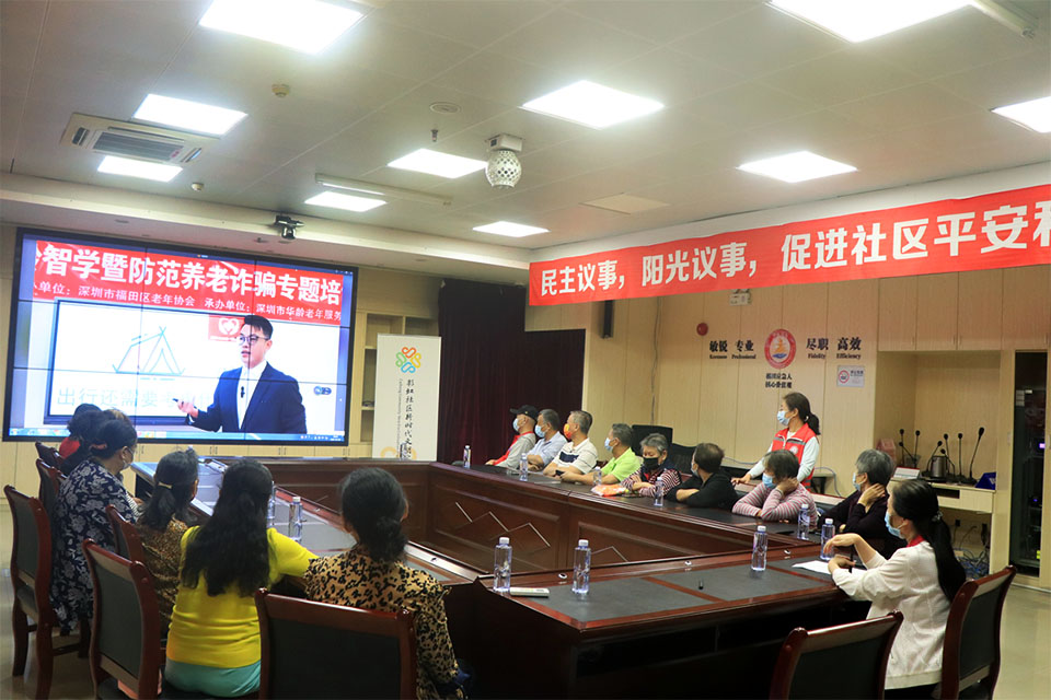 10月20日,彩虹社区老年人协会在彩虹社区工作站大力支持下,组织安排协会的交谊舞队、京剧社队、小森林合唱队、乒乓球队的代表近20人在彩虹社区新时代文明实践站参加学习福田区老年人协会举办线上《2022年福田银龄智学暨防范养老诈骗专题培训讲座》之《出行订票&旅游》,其他队由队长将二维码转到队群,让队员们各自用手机观看学习。