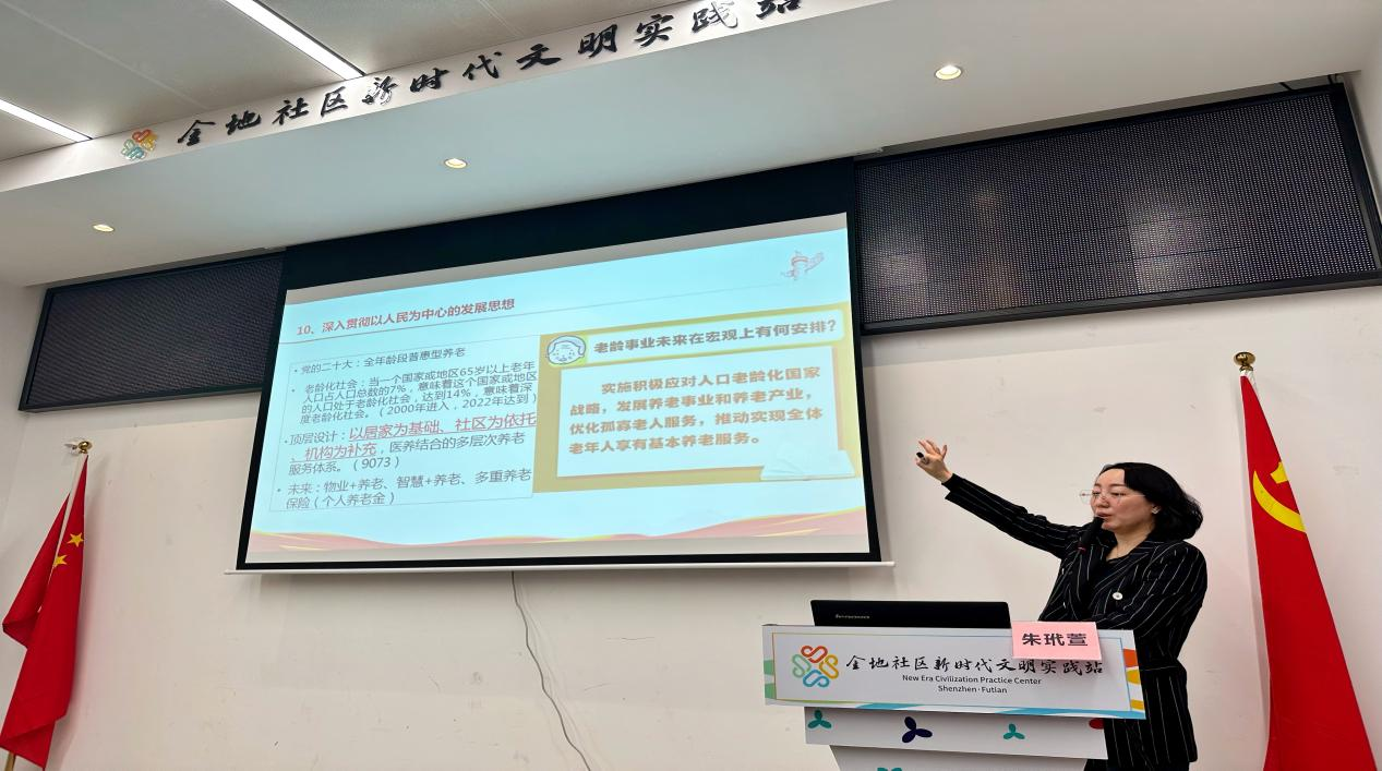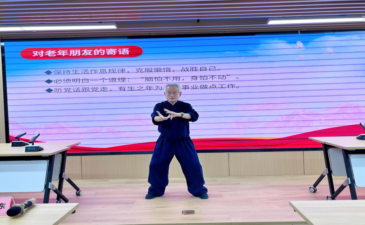 在香蜜湖街道、园岭街道,杨广德讲师为学员讲解了党的二十大关于老年事业发展的相关政策,结合二十大背景和自身经历,与学员们亲切分享自己的健康生活和和参与社区建设的经历,积极引导学员们“老有所乐、老有所为”。活动现场,杨老师还表演太极拳,与学员互动,分享老年养生建议,气氛轻松活跃,深入人心。