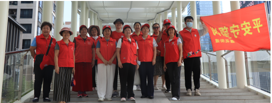 虽然暑热天气,我们这些义工们个个都老当益壮,不惧大汗淋漓,不惧汗湿衣衫, 辖区内新建的立交桥和通行的桥洞,都有红马甲义工的身影。他们配合平安守望岗值守的安保人员强化巡防,携手同心,守望相助,维护好我们美丽的家园。
