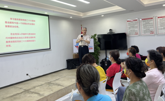 6月28日上午,华富街道老协在莲花二村党群服务中心邀请解放军离休老干部吴传桂教授为8个社区老年骨干约50人做了深入学习贯彻党的二十大精神主题报告会。