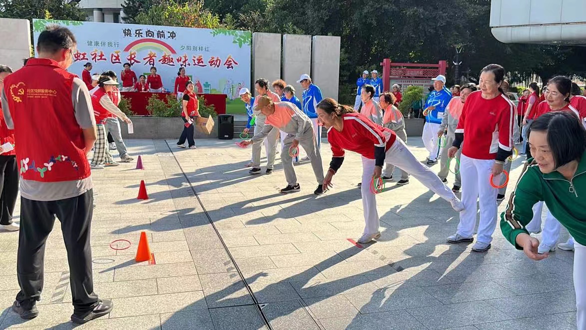 为贯彻落实“积极老龄观,健康老龄化”,丰富老年人精神文化生活,进一步提高老年人的社会参与度,在彩虹社区党委的大力支持下,经过彩虹社区老年人协会、彩虹社区党群服务中心精心组织策划,于2023年11月24日下午两点半在盛世一期广场举办彩虹社区第一届老年趣味运动会。
